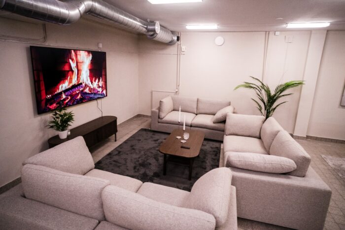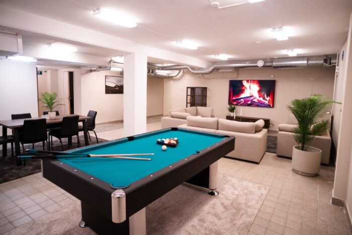 With us, you have access to spacious, newly renovated shared areas, including a fully equipped kitchen, newly renovated bathrooms and shower rooms, a living room with a 75″ TV and a billiards table, a gym, and a laundry room.